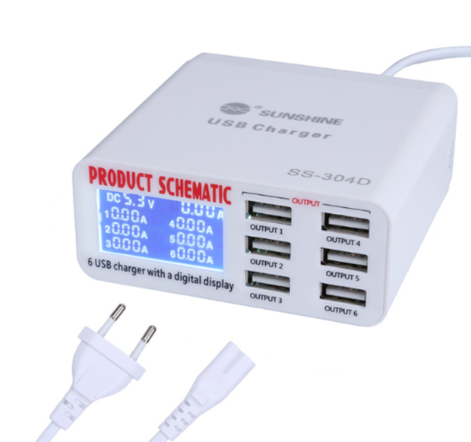 The SUNSHINE SS-304Q 6 port Intelligent USB Fast Charger is a powerful and efficient charging solution for multiple devices. With its intelligent technology, it automatically detects and delivers the optimal charging speed to each connected device, ensuring safe and fast charging. The charger is equipped with six USB ports, allowing you to charge multiple devices simultaneously. Its sleek and compact design makes it perfect for travel or home use. Say goodbye to tangled cables and slow charging times with this versatile and reliable USB fast charger.